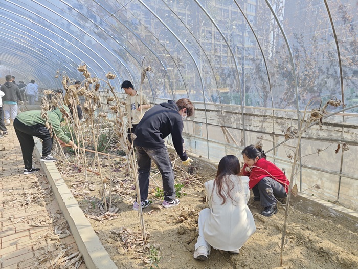 该院长期以来重视劳动教育,以劳强体、以劳增智、以劳育美、以劳培德,让劳动回归育人本位,积极探索构建“劳育+心育”的新模式。组织开展以“春暖花开,‘植’等你来”为主题的劳动教育实践活动,通过除草护花、耕植作物等集体活动,增强学生的责任感和团队合作能力,为学生全面发展赋能蓄势。活动现场,同学们分工协作,用汗水浇灌收获,坚定实干笃行奉献的精神。