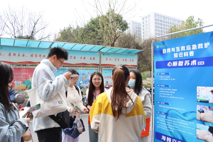 活动通过张贴科普海报、发放急救知识宣传折页、急救知识竞答、开放及应急救护知识普及培训等方式开展。志愿者通过讲解海报和折页上的急救知识,向现场师生普及心肺复苏等急救理论知识。学生们还争相踊跃参与急救知识有奖竞答小游戏。在面向附属小学学生开展应急救护知识普及性培训中,主讲人围绕心肺复苏和海姆立克急救法的理论和实操知识进行现场讲解和演示,志愿者们逐一指导小学生们的操作手法并邀请他们现场展示学习成果,帮助其进一步掌握急救技能、增强安全意识。