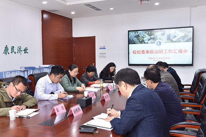 附属阜阳医院全体领导班子成员参加调研会。该院党委书记孙其虎汇报了医院医药领域腐败问题集中整治和校党委巡察反馈问题整改工作情况,院纪委书记吴建章专题汇报了纪委有关工作。