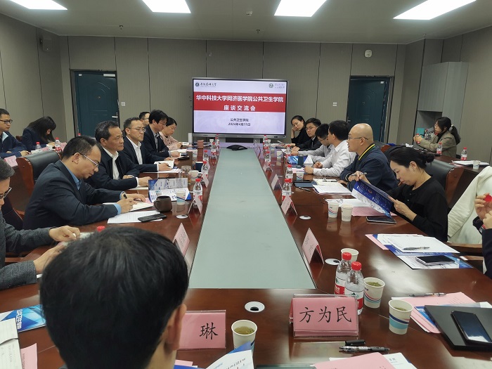 4月11日下午,华中科技大学公共卫生学院院长潘安一行来我校公共卫生学院调研,围绕高水平公共卫生学院建设座谈交流。我校公共卫生学院党委书记马军成、执行院长王华出席会议。