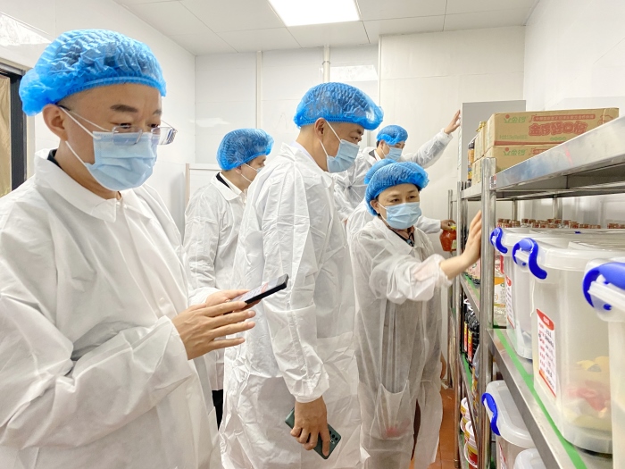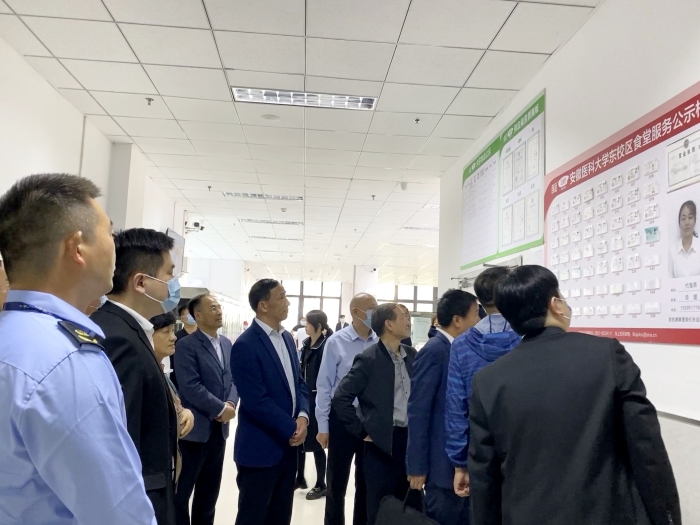 合肥市教育局、公安局、卫健委、市场监管局,新站高新区公安分局、市场监管局、社会发展局等单位相关负责人,东校区管委会及食堂经营单位负责人陪同检查。(东校区管委会)