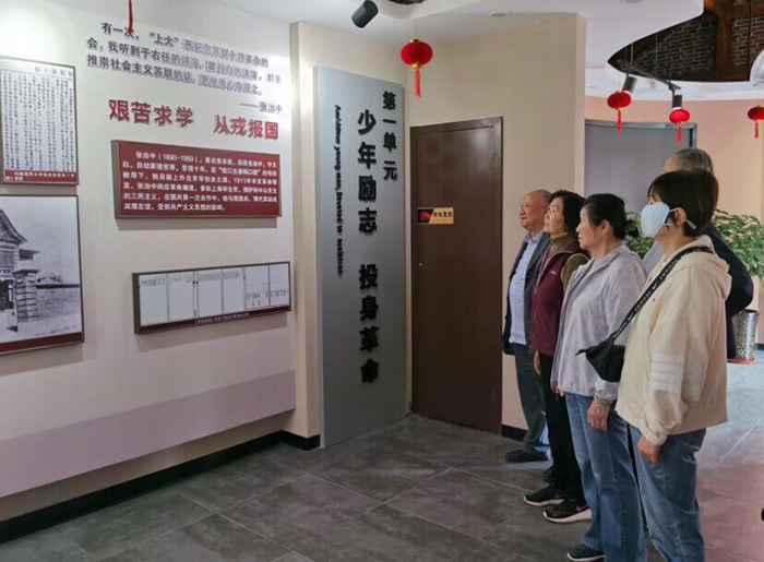 在张治中故居,老同志们认真听讲解,不时驻足观看、交流感想。一张张历史图片、一段段文献史料、一件件革命文物,展现了张治中将军的拳拳爱国心、殷殷报国志和大无畏的牺牲精神,全体党员深受感动,体会到了“和平将军”百折不挠的革命精神和鞠躬尽瘁的奉献精神,以及老一辈革命家的高尚品德和崇高风范。