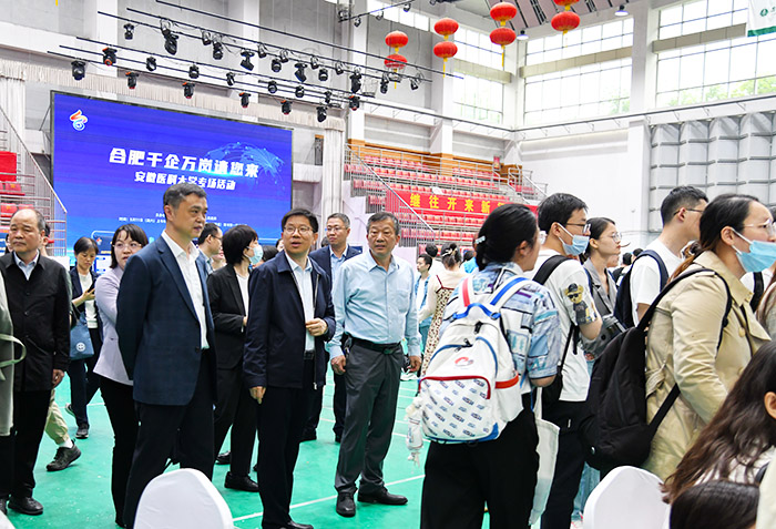 王琦表示,当前学校深入贯彻习近平总书记关于做好高校毕业生就业工作的重要指示批示精神,全面落实省委人才兴皖工程和“人才安徽行”系列活动部署要求,千方百计开拓岗位,支持毕业生筑梦江淮、留皖就业。此次“千企万岗请您来”专场活动走进安医,采取推介会和招聘会相结合的形式,诚邀安医学子留肥就业创业,学校将全力支持配合,为“健康合肥”建设持续输送高质量人才。