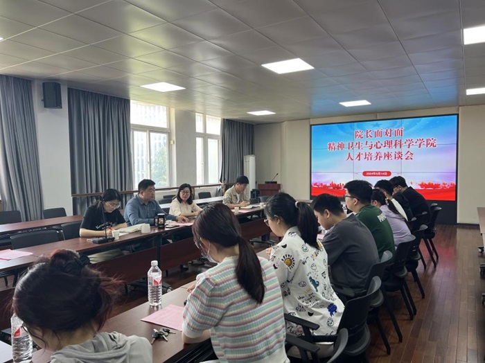 该院领导班子、辅导员、教学管理人员及2024届本科生代表参加座谈会。(精神卫生与心理科学学院 李明珠 周燕)