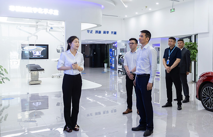 王琦对东超科技和皖仪科技的热情接待以及长期以来给予学校事业发展的关心支持表示感谢,并简要介绍了学校及直属附属医院事业发展情况。他表示,东超科技和皖仪科技作为行业头部企业,与学校联系紧密,希望校企双方能在生物医学工程、人工智能辅助疾病诊断、生命科学等领域,围绕人才培养、科研攻关、就业实习等内容建立完善的合作体系,签订战略合作协议,推动双方合作落地落实。他期待双方合作申报国家级重大科研项目和平台,推动科研成果转化,特别是在智慧医疗、高端医疗装备研发等前沿技术领域,找准合作关键点,为我校附属医院提供更多智慧化、信息化的产品和服务,为智慧医院建设贡献科技力量。
