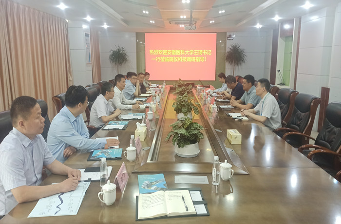 东超科技有限公司、皖仪科技股份有限公司相关负责人,校党政办公室、科技产业处、医院管理处、学生处、研工部、第一临床医学院、第二临床医学院、药学院、生物医学工程学院等单位负责人参加调研活动。(毕业生就业指导中心 朱茂宗)