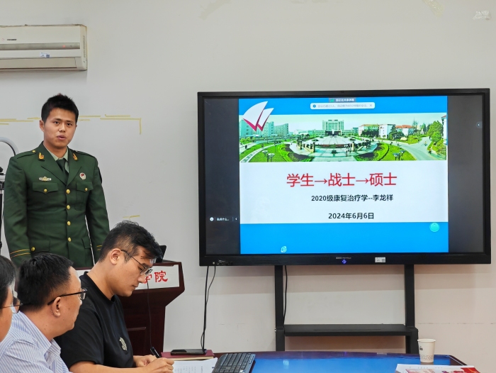 会上,李龙祥详细介绍了入伍、复学、就业、研究生招录、部队培养等方面的优抚政策,并结合自身实际,从征兵流程、经济补助、政策优待、个人成长、进步空间等方面作了交流,重点分享其通过“退役大学生士兵”专项硕士研究生招生计划被上海体育大学拟录取的心得感受。