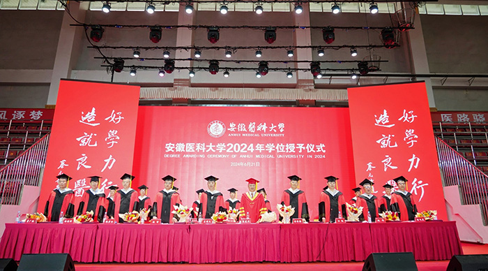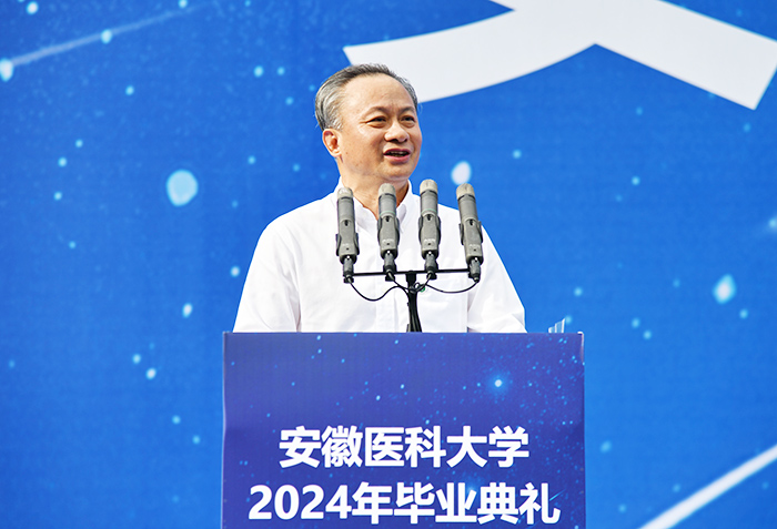 “同学们,请转头看看你们周围的同学、朋友,他们都是你们医学之路上坚实的伙伴,而在安医一起奋斗的日子会是你们宝贵的回忆。”夏强表示,很庆幸在安医遇上了相守一生的爱人和一群志同道合的朋友,他也希望学弟学妹们在毕业后仍能携手并进,于成功之际互享喜悦,于迷茫之际互相勉励,于困难之际守望相助。
