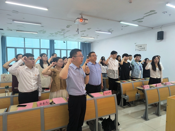6月28日,卫生管理学院在校本部知行楼B座505教室举行新党员入党宣誓仪式,该院党委书记赵云峰出席活动,院党委副书记胡鹏主持仪式。学院各学生党支部书记、2024年新发展学生党员以及辅导员参加活动。
