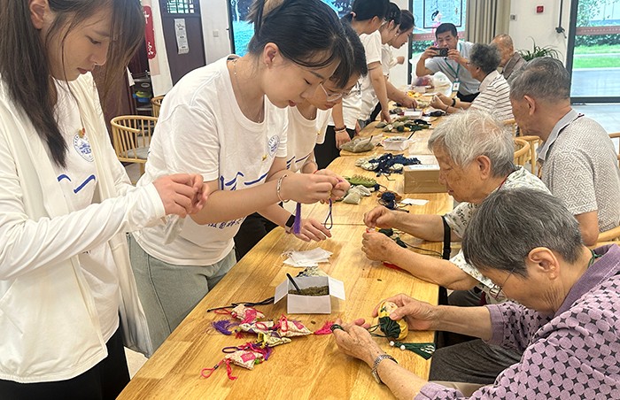 “一企同行”社会实践团由校研工部、药学院共同指导,团队结合研究生职业生涯规划教育,根据护理院老人的生活习惯和兴趣爱好,精心策划制定实践方案,开展了太极拳教学、酷暑送清凉、中药驱蚊香囊制作等内容多样的系列活动。“这群孩子们的到来真的让我们感觉到欢乐。孩子们带我们亲手做的传统中药驱蚊香囊也十分有意义。”谈到这次活动,护理院的刘芳老人连连夸赞。