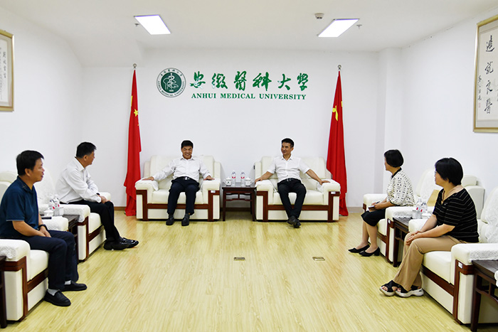 公共卫生学院党委书记马军成、执行院长王华陪同参观并参加座谈交流。(文/党委统战部 周丽娜 图/新闻中心 殷泽文)