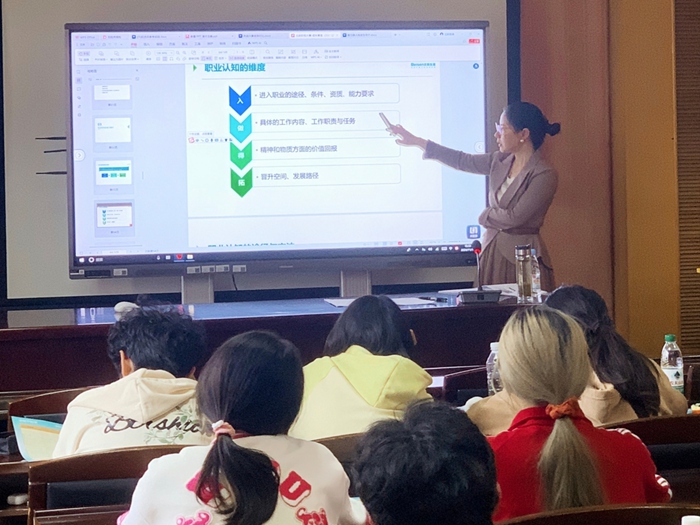 学院创立职业规划工作坊,以更好引导本科生、研究生树立清晰的职业规划意识。主讲教师以新质生产力为背景,对青年大学生如何正确评估、认知自我、如何规划未来以及制定行动方案等进行全面梳理,详细介绍了职业规划大赛成长赛道与就业赛道的区别与联系,鼓励学子 “以赛促学”“以赛促就”,力争实现高质量就业。