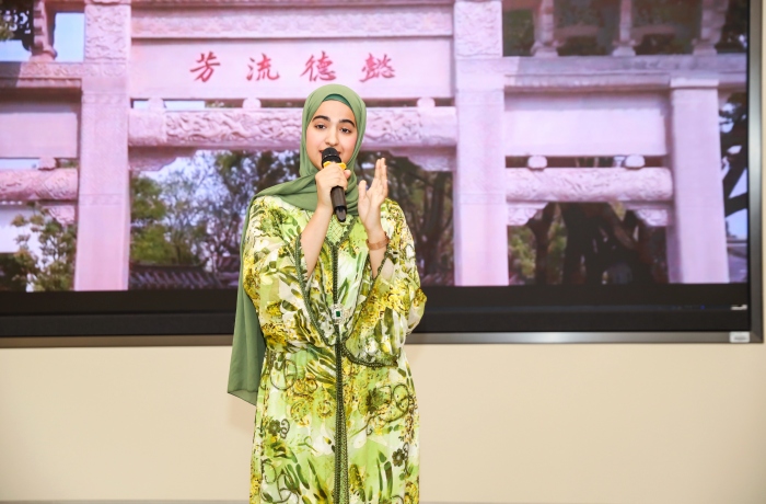 国际教育学院积极组织国际学生参加该赛事,鼓励学生通过比赛扩展视野、了解中华文化、提升汉语技能,以赛促学,以进一步提高国际学生的培养质量。本次比赛分为复赛和决赛两个阶段。复赛阶段,容佳琪将非遗传承故事中的“求子渔灯”和现代生殖技术的“生命之灯”巧妙结合,表达了自己深耕生殖技术、造福中外家庭的决心。佐赫拉以一曲“六尺巷”为引,生动讲述了她眼中的“六尺巷”并表达了致力做“六尺巷”的国际代言人,让世界了解和合共生、和衷共济的中华大智慧。两人的精彩讲述收获现场阵阵喝彩。