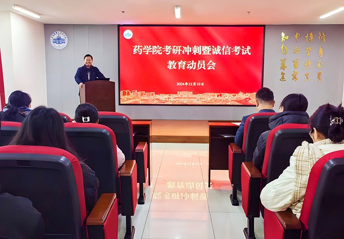 12月10日,药学院举办2025届考研冲刺大会暨诚信考试教育动员会,为考研学子提振备考信心的同时,划出纪律红线。学院党委书记骆广东、执行院长孟晓明出席动员会,院党委副书记、纪委书记李晓松主持会议。