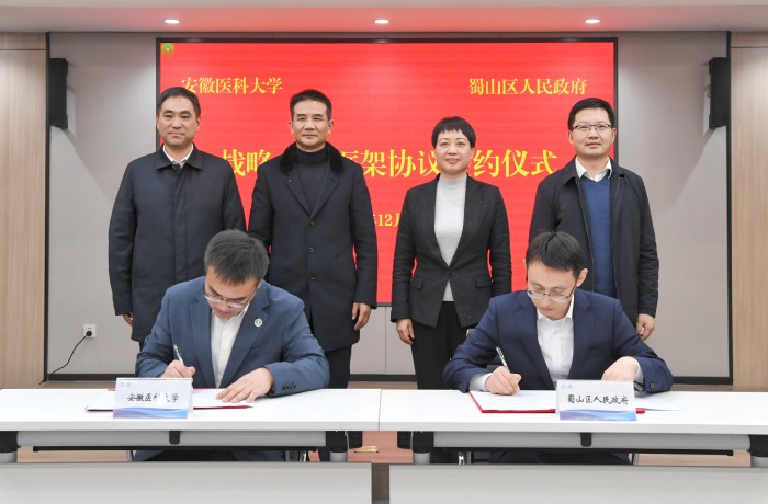 12月19日,校党委书记王琦带队前往蜀山区科大硅谷蜀山园调研,并与蜀山区人民政府签署战略合作协议。合肥市政府副市长、蜀山区委书记王海霞,蜀山区委副书记、区政府区长杨森,蜀山区政府副区长邓九安,合肥产投集团党委书记、董事长江鑫,合肥科创集团副总经理姚瑞等出席活动,我校学术副校长张智、第一附属医院院长孙倍成参加座谈交流。