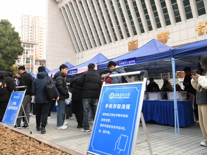 学校高度重视研考宣传和服务保障工作,考前通过学校官网、微信公众号等网络渠道发布了《考生特别提醒》《考场规则》《诚信考试须知》等重要信息,对考风考纪、考试要求、考场及安检安排、入场流程等事项进行了详细说明和图解。此外,在校园内张贴提示标语,摆放考点平面图,粘贴考场地标,为广大考生营造了庄重和谐的考试氛围。为提高校内外考生的入场效率,我校特设手机存放处、安检提醒和指南,确保每位考生都能顺利进入考场。