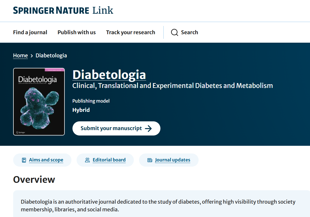 期刊链接:https://diabetologia-journal.org/about-the-journal/editorial-board/