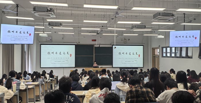 4月9日,医学人文学院邀请黄山市非物质文化遗产保护中心主任方文婷来校, 开展以“徽州非遗之美”为主题的讲座。我校2024级卫生监督管理、食品卫生与营养学、药学、麻醉学、运动康复等专业同学聆听讲座。讲座后,方文婷与学校教师展开座谈交流,学院副院长蔡婕主持会议。
