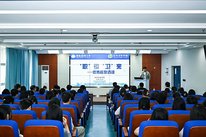活动期间,为助力毕业生高质量就业,深化校友联动,公共卫生学院校友会举办“职”引“卫”来优秀校友访谈分享会。校友们结合自身经历,围绕基层就业、疾控体系、科研深造等展开分享。互动环节,学生们就“基层就业政策解读”“医院与疾控岗位选择”“科研与职业发展的平衡”等问题踊跃提问,校友们结合具体案例给出针对性建议,现场气氛热烈。