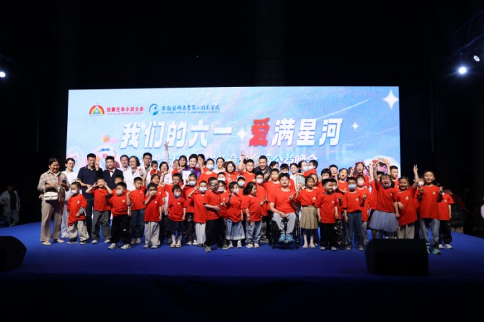 5月30日晚,在“六一”国际儿童节即将到来之际,“我们的六一·爱满星河”——第十六届安徽省儿童白血病主题公益晚会在我校第二附属医院南广场如期举行。安徽省残疾人福利基金会副理事长董介林,校党委书记王琦,新华社安徽分社党组成员、副社长、总编辑李亚彪,安徽省卫健委二级巡视员郭德春,安徽省红十字会党组成员、秘书长曹芦松等出席晚会。儿童白血病患者及家长、医护人员、爱心大使、志愿者代表、爱心企业团体代表、各媒体记者等近千人参加晚会活动。安徽省儿童白血病公益“爱心大使”阿进、刘杨波担纲主持。