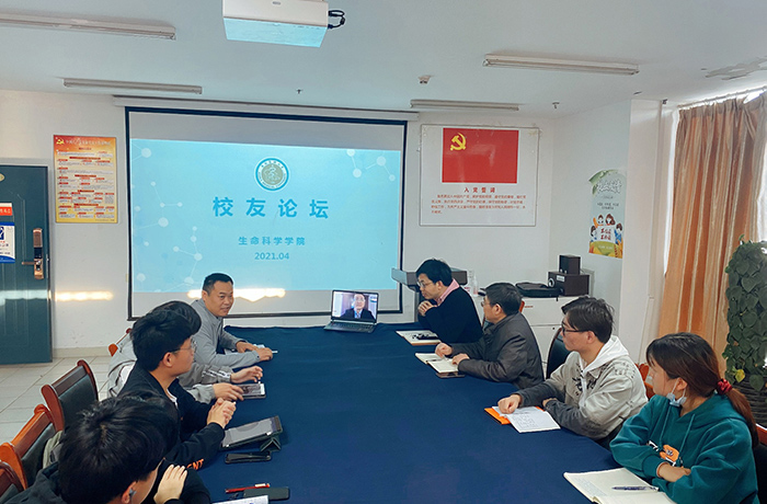近日,生命科学学院结合“我为群众办实事”实践活动,积极挖掘校友资源,从学生成长成才实际需求出发,结合学科竞赛培育项目、科研能力提升计划等活动,筹划打造“专业领航计划”。首届生物技术专业毕业生王杰受邀面向全院师生开讲校友论坛第一期,院党委书记单永强、院长周洪、副院长黄升海出席论坛连线现场。