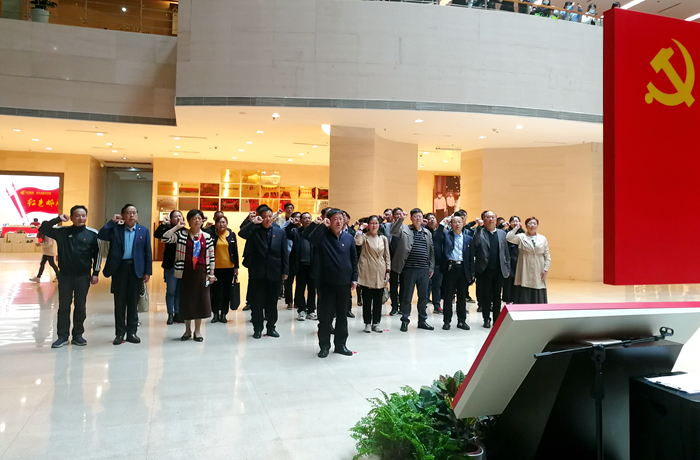 全体党员干部在“渡江战役总前委”雕塑前驻足瞻仰,共同缅怀革命先辈的丰功伟绩。进入场馆,党员干部们在该院党委副书记高长林带领下面向党旗,高举右拳,重温入党誓词。庄严的誓词,铿锵的声音让党员们热血沸腾,激情澎湃,更加坚定了为党的事业奋斗终身的决心和信念。