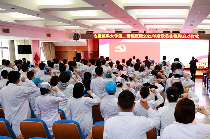 该院各党总支党支部书记、党委各部门负责人、先锋岗全体党员参加仪式。(第二附属医院)