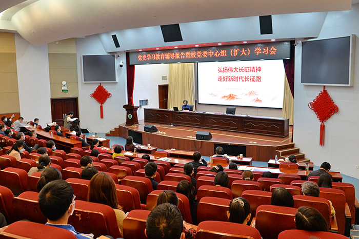 4月29日下午,学校召开党史学习教育专题辅导报告暨校党委中心组(扩大)学习会。中国人民解放军军事科学院原军事历史研究所正师职研究员、土地革命战争史专家陈力教授,应邀作题为《弘扬伟大长征精神,走好新时代长征路》的报告。校党委书记顾家山主持报告会并讲话,校领导曹云霞、刘群英、肖圣龙、吕雄文、黄新美出席。
