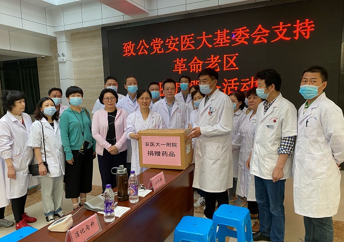 内科、外科、骨科等临床专家为百余名老区百姓进行了义诊,发现数名高危高血压病患者并进行了相应的处理。对住院患者进行教学查房、指导当地医生规范诊疗,受到老区乡亲和医护人员的热情欢迎。活动期间,一附院发挥省级公立医院的自身优势,向天堂寨镇中心卫生院捐赠了价值2000元的降压、降糖、护胃等常用药品药品,巩固拓展脱贫攻坚成果同乡村振兴有效衔接,是民主党派与党同心、学党史办实事的具体体现。