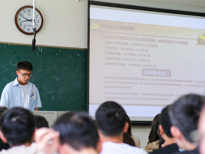 学生党员以不同时期的典型事例、历史人物、精彩故事为主干,通过讲述中国共产党艰辛的成长历史、抗日女英雄赵一曼的革命历程、中华人民共和国成立的光辉时刻、改革开放的伟大转折、继往开来新的飞跃以及建党100周年的历史成就,带领大家回顾了党的百年征程和辉煌成就。在场聆听的青年学子从中国共产党在极端困境中发展壮大、在绝境中突出重围、在困顿逆境中毅然奋进并最终取得举世瞩目的伟大成就的革命历史中,学习和吸收了正能量,明大德、立大志,也坚定了勇担时代赋予使命的决心。
