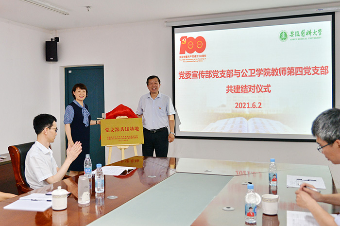 6月2日下午,副校长肖圣龙出席机关党委宣传部党支部和公共卫生学院党委教师第四党支部结对共建签约仪式,并为共建支部讲授党史学习教育专题党课。
