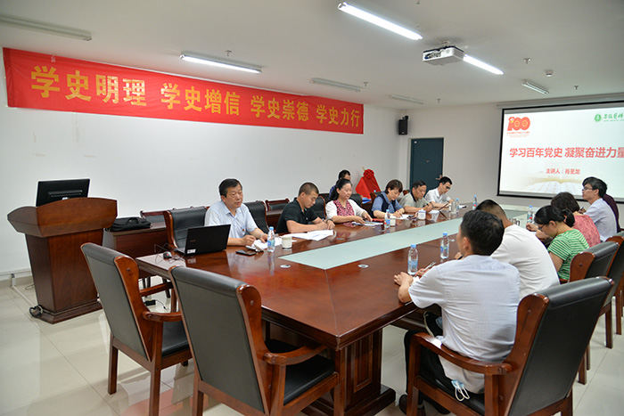 肖圣龙以《学习百年党史,凝聚奋进力量》为题,从党史学习教育的重大意义、中国共产党百年奋斗的光辉历程和历史性贡献、开展党史学习教育的重点、把党史学习教育转化为办学兴校的动力等四个方面,引经据典,结合真实感人的历史、生动详实的案例以及自身丰富的工作经验,教育引导支部全体成员要认真学习党史,把握规律、把握未来,坚定信仰、坚定方向,切实做到学史明理、学史增信、学史崇德、学史力行。