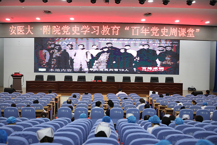 6月9日下午,第一附属医院医院党史学习教育“百年党史周课堂”在院会议中心开课。该院党委书记金宗祥出席并讲话。