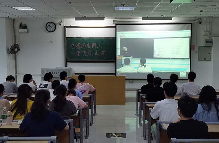 6月18日下午,省委教育工委通过安徽省智慧思政课教学平台举办全省师生“同上一堂‘党史’大课”活动。我校积极宣传,相关部门和各学院认真组织,本科生、研究生、思想政治理论课教师及辅导员等近2万人,分别在教室、会议室、活动室、宿舍等地,通过网络收看直播或回看教学视频,与全省师生共同聆听此堂党史大课,并交流分享了学习感受。