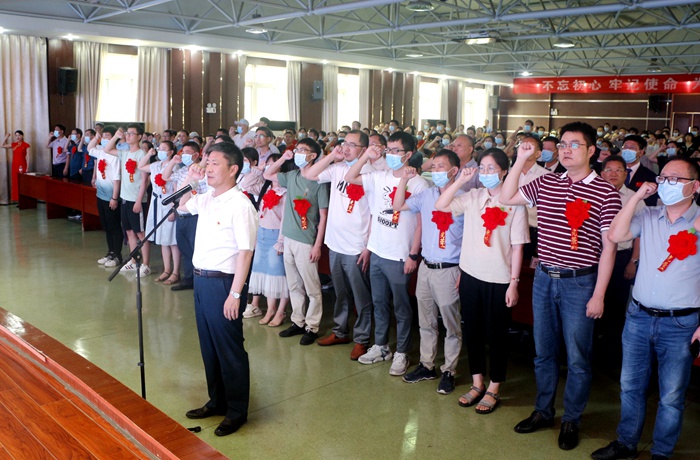 会上,该院党委副书记高长林带领新发展的20位党员和参会的全体党员面向鲜红的党旗进行了庄严的入党宣誓和重温入党誓词仪式。