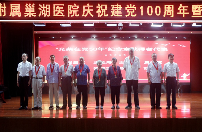 校党委医院工作部负责人,附属巢湖医院纪委委员,党总支、党支部书记,党总支、党支部委员,新党员、入党积极分子,巢湖临床医学院学生党总支党员,院“光荣在党50年”纪念章获得者代表,先进集体代表、先进个人以及建党100周年庆祝活动获奖人员、院中层干部参加会议。(附属巢湖医院党委工作部 谭琼)