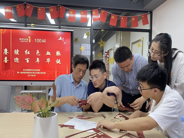 活动中,参与师生共同开展了“同心向党、共拼红船、共绣党旗”接力,通过一榫一卯、一针一线拼接红船、共绣党旗,感受百年历程,共庆百年华诞。