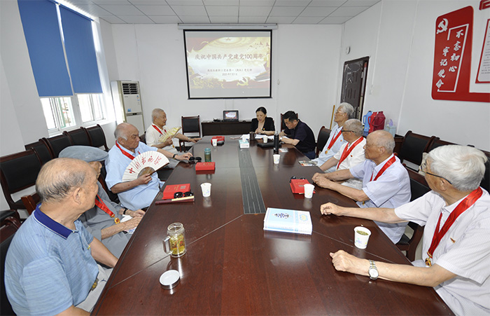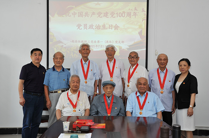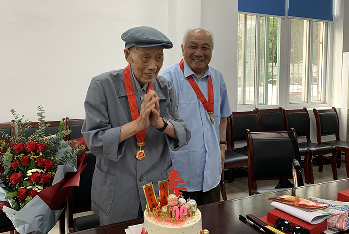 7月1日下午,我校离退休教职工党委的会议室里充满欢乐喜庆的气氛,我校与党同龄的百岁老战士、老党员徐亚球站在为他定制的百岁生日蛋糕前笑得十分开心,连连拱手向现场众人表达谢意。
