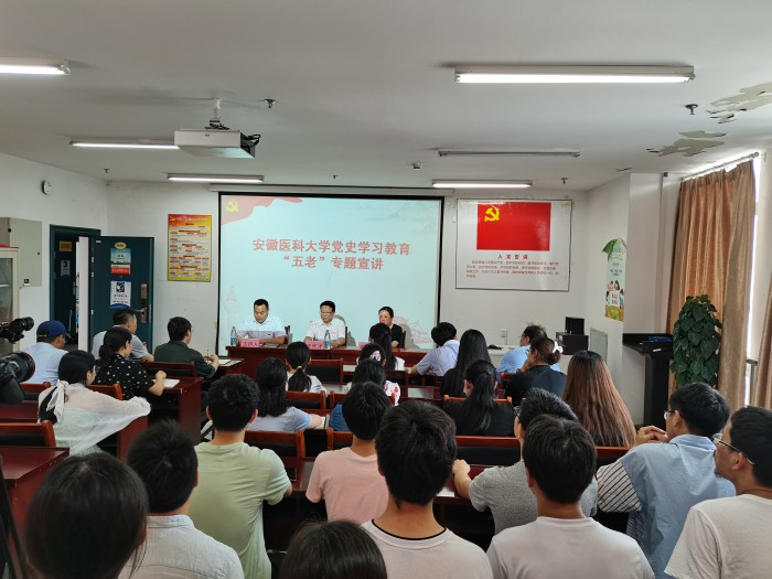 王怀才以《弘扬优良传统,传承红色精神》为主题,从“习近平总书记关于党史学习教育重要讲话精神”“中国共产党百年党史的四个阶段”“学史力行,争做新时代大国良医”等三个部分展开,结合自身学史明理、学史力行的感悟,为师生作了一场内容丰富、史料详实的精彩报告。他表示,今年是中国共产党成立100周年,从播下革命火种的小小红船,到领航复兴伟业的巍巍巨轮,在百年奋斗历程中,我们党领导人民取得了举世瞩目的辉煌成就,书写了波澜壮阔的历史画卷,留下了弥足珍贵的宝贵经验和精神财富。加强党史学习教育是落实立德树人根本任务的必然选择,是筑牢意识形态阵地的迫切需要,是传承红色基因的内在要求。学校党委在党史学习教育中开展“五老”进校园讲党史活动正当其时,具有重要意义。