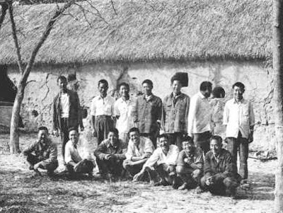 一九八一年,部分“大包干”带头人在茅草屋农舍前合影(资料照片)。