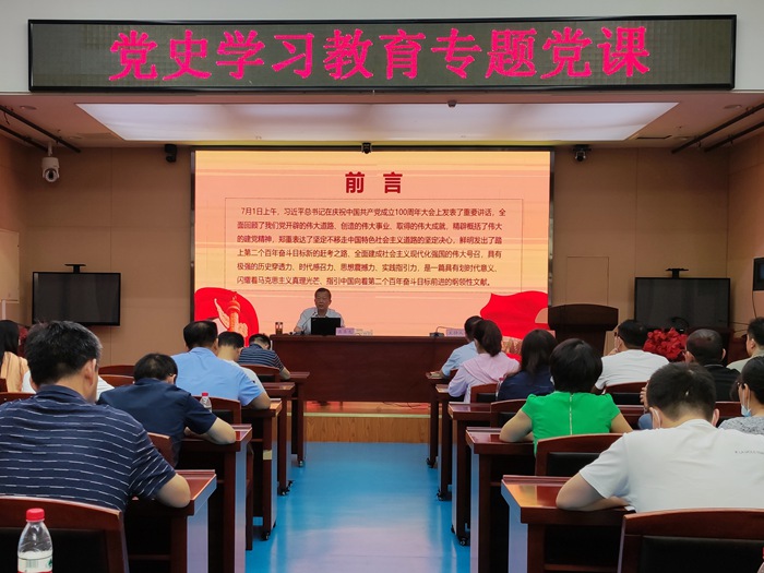 7月30日下午,副校长肖圣龙以“奋斗百年路 启航新征程”为题,为分管部门和联系党支部讲授党史学习教育专题党课。