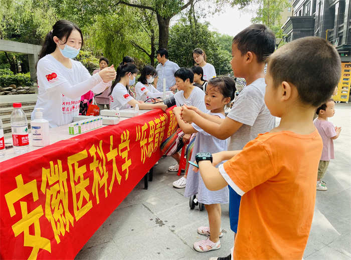为了进一步倡导健康生活理念,助力实现“健康中国”战略,活动开展期间,实践团全体成员分别前往肥西县山南镇吕楼社区、合肥市经开区高刘社区、芙蓉社区和翡翠湖社区开展健康知识宣讲活动。在吕楼社区,同学们进行夏季“防溺水”宣传,教小朋友们“口腔护理知识”“七步洗手法”,在高刘社区,同学们给社区居民量血压、测血糖,进行健康体检,倡导大家树立正确健康意识、掌握一定保健技能,在芙蓉社区和翡翠湖社区,同学们给大家宣讲“夏季常见传染病的预防”,提升基层居民卫生知识水平,预防疾病,促进健康。通过活动,普及了基本健康卫生知识和疾病预防常识,受到了当地群众的欢迎。
