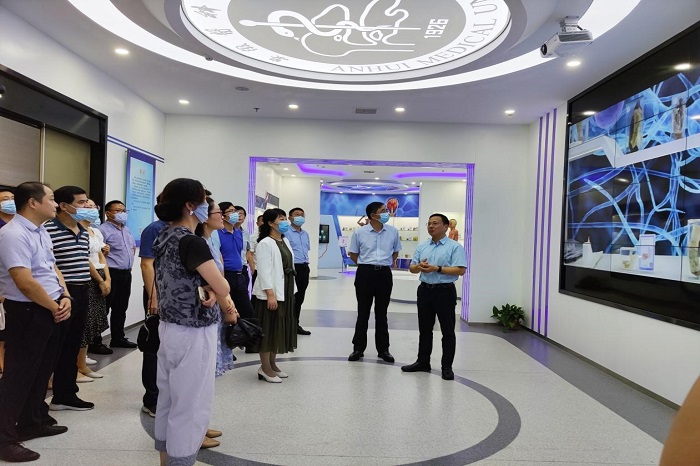 中心组首先来到学校人体科学馆参观学习。据悉,学校人体科学馆现有人体标本近千件,集声光电于一体,可以通过标本展示、专人讲解、视频放映、VR/AR体验等多种方式,为人们揭秘人类从“产生”到“诞生”,从青春期到衰老期的全过程。“这是目前华东地区科技含量最高、最美的人体科学教育基地。”实验教学中心主任汪思应介绍道。