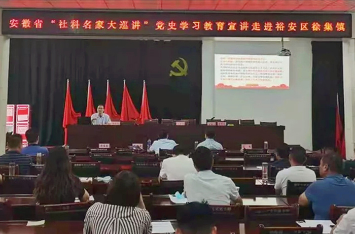 8月20日,安徽省“社科名家大巡讲”党史学习教育宣讲团专家、我校马克思主义学院院长柳泽民教授前往六安市裕安区徐集镇作题为《用马克思主义观察时代把握时代引领时代》专题宣讲。