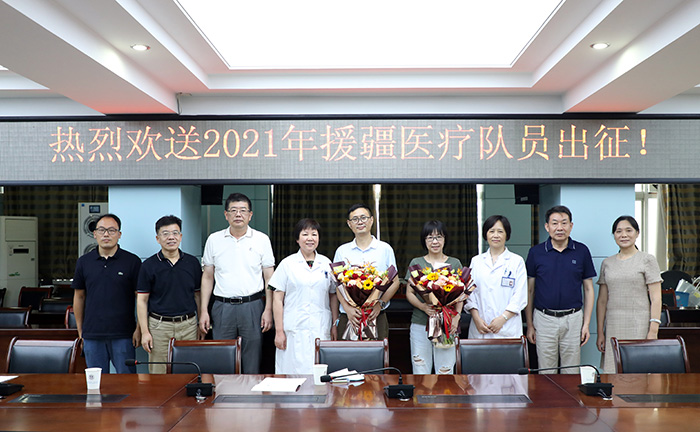 近日,第一附属医院召开2021年援疆医疗队员出征欢送会,该院党委书记金宗祥出席会议。该院援疆队员、妇产科姚洁、儿科周登余参加会议。
