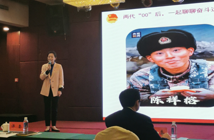 团课中,杨艳以“两代‘00’后,一起聊聊奋斗这件事”为主题,从热门词汇“躺平”切入,利用诗、音、画创设与一百年的历史人物对话的情境,讲述了革命先驱、青年军人、团员青年等几代青年人坚守初心、矢志奋斗的感人故事。她还以“手机的合理使用”,引导学生认识到奋斗须落实在分秒之中,引发共鸣和思考。该堂团课以小见大、主题鲜明、形式新颖、讲述流畅,赢得了现场评委和观众的好评。