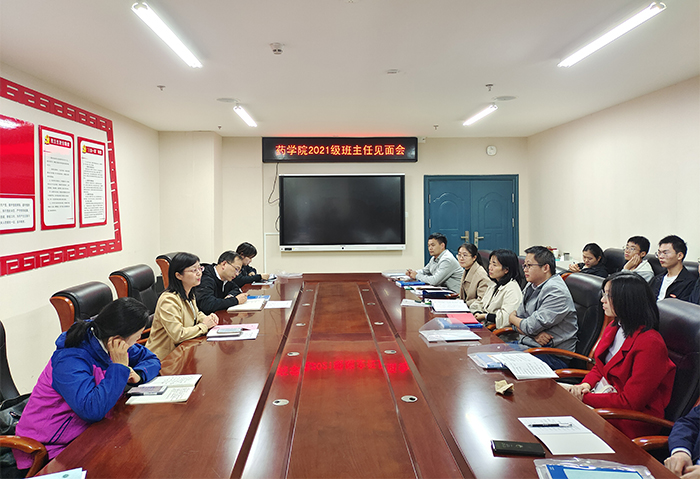 袁方向2021级12位班主任详细介绍了药学院的发展历程、学科建设、思政工作基本构架和学生工作总体情况,带领大家共同学习了班主任考核管理办法,并指出班主任工作要深入学生日常,从思想教育、学风建设、科研引领等方面具体开展学生工作,促进学生全面发展。