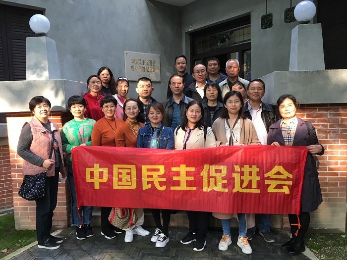 民进旧址纪念馆内,会员们在铜像前深切缅怀马叙伦、王绍鏊等民进主要创始人,依次参观“民进先辈的早期斗争和民进的创建”“积极响应中共中央五一口号”、“民进参与协商建国”等展区,了解了先辈们在中国面临前途命运抉择时创立中国民主促进会、开启民进事业和对我国教育文化事业做出的贡献。