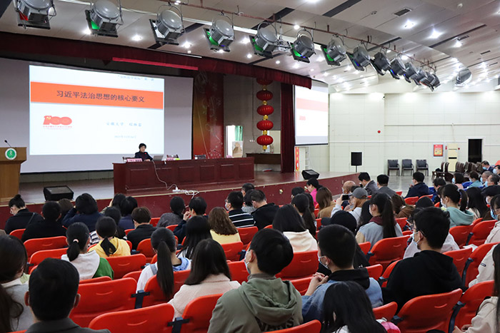 程雁雷在题为《习近平法治思想的核心要义》的报告中,将历史和现实相贯通,国际和国内相关联,理论和实际相结合,深刻阐释了习近平法治思想的重大意义,全面分析了习近平法治思想的形成与发展,重点论述了习近平法治思想的核心要义。她结合习近平总书记关于全面依法治国、建设法治中国的重要论述,以高远的政治站位、深厚的理论功底、缜密的逻辑思维,原汁原味地呈现了习近平法治思想的理论精华、思想精髓、实践精义,用学理化阐释和学术化表达展现了习近平法治思想的思想高度、学理深度和学术厚度。报告说理充分透彻、逻辑层次清晰,让与会师生更加深刻地领悟到习近平法治思想的发展进程,更加准确把握了习近平法治思想的丰富内涵。