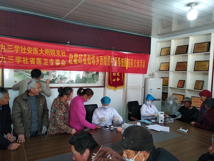 3月5日,恰逢学雷锋纪念日和全国两会召开,九三学社安医大基层委与省政府参事室、省九三学社医卫专委会在霍邱县彭塔乡西隐贤村联合开展新春义诊送药活动。校党委常委、统战部部长顾秀平,省政府参事、省九三学社医卫委副主委、一附院肿瘤内科主任医师李俊,省级医院部分专家、省政府参事业务处全体人员、彭塔镇党委政府有关领导和参事室驻村帮扶干部参加义诊活动。